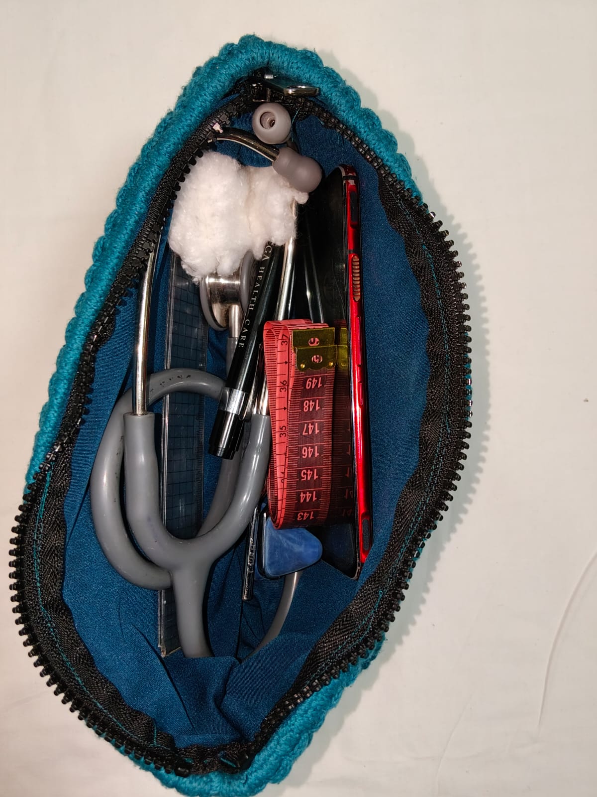Designed for everyday clinical life, this petroleum blue medical bag is crafted from durable macramé rope to carry your stethoscope and essential medical tools with ease and style. Lightweight yet strong, it offers a reliable solution for keeping your equipment organized whether you’re on rounds, in clinic, or on the move.